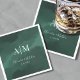 Diese minimalistische Hochzeitsnapkin bietet einen smaragdgrünen oder waldgrünen Aquarellhintergrund mit weißen Schriftart, in dem die Initialen, Namen und das Hochzeitsdatum der Braut und des Bräutigams dargestellt werden. Das einfache und elegante Design integriert sich nahtlos in jedes Hochzeitsthema, einschließlich traditioneller, klassischer, gotischer oder moderner. Es funktioniert besonders gut für Herbst oder Hochzeiten im Herbst, kann aber auch an andere Jahreszeiten oder Farbschemata angepasst werden. Ideal für Hochzeitsfeiern und Cocktailstunden, fügt diese Serviette eine raffinierte Touch hinzu und bleibt gleichzeitig vielseitig für verschiedene saisonale Themen. Der elegante smaragdgrüne oder waldgrüne Aquarellhintergrund und die weißen Schriftart-Farben können auf Ihre speziellen Wünsche angepasst werden. Der Text wird in einer Mischung aus Kalligraphie-Skript-Typografie und einem klassischen Serif-Schriftart präsentiert. Seine schlichte Eleganz macht es zu einer vielseitigen Wahl für Ihren besonderen Tag. Einfache elegante, grüne Aquarellfarben Monogram Names Wedding Cocktail Napkin.
