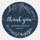 Elegant Simple Navy Blue Floral Wreath Vielen Dank klassische Rundaufkleber