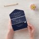 Dieses elegante marineblaue Hochzeitsangebot eignet sich perfekt für eine moderne Hochzeit, das schlichte Design zeichnet sich durch elegante weiße Kalligraphie auf blauem Hintergrund aus.
