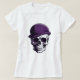 Vector illustration of a stylized black and white skull with purple shading, wearing a purple bowler hat; modern graphic style, sharp outlines, light background.