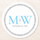 Elegant Sky Blue Monogram Wedding Runder Pappuntersetzer