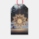 Make your holiday presents shine with this beautifully captured snowflake ornament gift tag. Featuring a glowing crystal design against a frosty window backdrop, it brings timeless elegance to your Christmas wrapping. Ideal for those who love winter magic, minimalist charm, and refined seasonal style. Perfect for Christmas gifts, party favors, or even holiday events—customize the back with a name or message to make it personal!