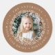 Fügen Sie mit unseren eleganten Snowflake Wreath-Rücksendeadressen-Aufklebern eine festliche Touch zu Ihren Urlaubskurven hinzu. Die Rücksendeadresse-Aufkleber für den Urlaub verzieren Ihr Foto, umgeben von einem Kranz aus weißen Schneeflocken und Kiefernästen mit einem Lebkuchenhintergrund. Ihr Familienname und Ihre Rücksendeadresse werden am äußeren Rand der Rundaufkleber in weißer Schrift angezeigt.
