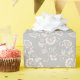 This delicate floral pattern features soft pink and white blossoms with graceful vines and leaves, arranged in a symmetrical repeat over a muted gray background. The vintage-inspired palette and intricate layout evoke timeless charm and romantic elegance, making it ideal for wedding stationery, feminine decor, or heritage-themed accessories. Its harmonious balance of softness and sophistication adds a refined touch to any occasion.