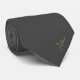 Elegant Solid Black Gold Script Name Neck Tie Krawatte
