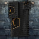 An elegant, gold outlined frame with an ornate initial, with a black pin-striped background. Personalize with your initial or give as a gift.
