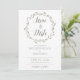 Elegante Hochzeit Speichern Sie die Datumskarten mit grauem Blumenkranz und benutzerdefiniertem grauem Text - Sie können Namen und Hochzeitstermin ändern, auf weißem Hintergrund gedruckt