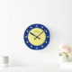 Elegant Stars on Blue and Yellow Runde Wanduhr