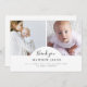 Dieses schöne, zeitlose Foto Dankeschön-Grußkarte ist ideal für jeden, der will, sich bei der Babydusche für die Geschenke, Liebe und Unterstützung, die sie erhalten haben, zu bedanken und ihr Kleines der Welt vorzustellen. Das moderne, stilvolle und elegante Design besticht durch einen minimalistischen Stil. Es umfasst zwei individuell gestaltbare Fotos, die in der Mitte platziert sind, sowie ein Dankeschön in klassischer Kalligraphie unter einem Bogen und eine elegante Typografie für Ihre Informationen, wie Babyname, Geburtsdatum usw. Auf der Rückseite ist Ihre individuell anpassbare Danksagung mit Ihren Namen. Verwenden Sie die Schaltfläche "Anpassen", um Fotos zu ersetzen und Text zu bearbeiten.