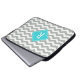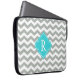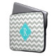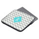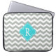 Elegante, trendige, stilvolle und klassisch graue Zickzack Zickzack-Streifen, aqua blau bewölkter Kreis Form monogramm Laptop-Tasche. Für sie: Mädchen, Tochter, Schwester, Mutter, Tante, Dame, Frau.