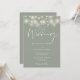 This elegant script sage green wedding invitation, featuring pretty string lights, can be personalized with your information in chic typography. Designed by Thisisnotme©