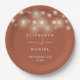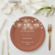 This elegant terracotta wedding paper plate, featuring pretty string lights, can be personalized with your information in chic typography. Designed by Thisisnotme©