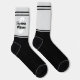 Elegant black and gray monogrammed signature crew socks. Personalized with a full name and a monogram in the background and decorated with black and grey stripes. Neutral colors and stylish lines make these socks a great affordable and practical personalized gift.
