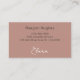 The back side introduces a beautiful muted terracotta-pink tone that adds warmth and contrast to the overall design. It includes a sample layout for your personal information — name, phone number, email, and address — presented in a clear, readable font. At the bottom, your business name or signature-style logo is elegantly displayed in white script, adding a touch of personality and charm.