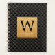 Eleganter, stylischer Black Gold Monogram Initial Script Planner. Mit einem luxuriösen schwarzen und goldenen Diamantenhintergrund.