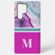 Die Aquamarine Magenta Fuchsia Stone Monogram Initial Samsung Galaxy S22 Ultra Case. Kristallwaren und Geodaten sind nach wie vor ein beliebter Trend! Dieser Druck zeichnet sich durch ein nahes Bild eines lebendigen, türkisfarbenen und lila (magenta) Geode-Steins aus, komplett mit kleinen Kristallen. Fügen Sie Ihre Initialen hinzu, um es zu Ihrem eigenen zu machen.