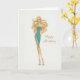 A sophisticated birthday card featuring a stylish blonde woman in a sleek teal and gold dress, exuding confidence and timeless glamour. Perfect for celebrating someone who carries themselves with effortless elegance and undeniable presence.