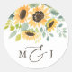 Elegant Sunflower Monogram Wedding Runder Aufkleber