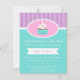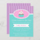 Ein kleiner Kuchen ist unterwegs! Feiern Sie mit Mama auf eine besondere Art und Weise! Beginnen Sie mit dieser eleganten, modernen und süßen Babydusche! Es gibt einen niedlichen Kuchen mit weißem, cremefarbenem Zuckerguss, der mit winzigen Herzklopfen geschmückt ist. Es wird in einem ovalen mit farbenfrohen Kreisen platziert. Hintergrund der lila Streifen Muster. Eine lila, rosa und türkisfarbene Farbpalette, die sich durch nichts verändert. Das Baby Dusche Party lässt sich leicht persönlich gestalten.