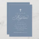 Elegant Taufe Script Cross Dusty Blue Einladung