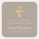 Personalisierte Elegant Taupe Cross Boy First Communion Square Sticker.