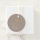 Custom Elegant Taupe Cross First Communion Round Gunst Tags.