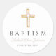 Personalisierte Elegant Taupe Religious Cross Taufe Klassische Rundsticker.