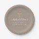 Personalisierte Elegant Taupe Religious Cross First Communion Papier Teller.