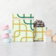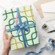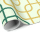 This sophisticated wrapping paper features a timeless pattern of interlocking, rounded squares in alternating diagonal bands of deep teal and gold. The pattern creates a sense of depth and movement across a subtle, light sage-green background, offering a refined and high-end feel. Perfect for a wide variety of gift-giving occasions, from weddings and anniversaries to professional milestones, this design adds a touch of classic, retro-inspired elegance to any package.