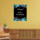 Elegant Teal Blue and Silver Flower Birthday Party Poster