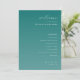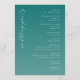This wedding program features a minimalist and elegant design with a vertical layout, centered alignment, and ample negative space. The background showcases a gradient of teal hues transitioning from dark to light, creating a serene atmosphere. The typography includes a mix of cursive for the welcoming greeting, bold serif for the names, and clean sans-serif for event details, ensuring readability and sophistication. Perfect for couples seeking a modern and uncluttered aesthetic, this design captures the formal yet inviting mood of a significant life celebration.