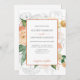 Diese elegante und romantische Hochzeitseinladung mit Rost, Terrakotta, Champagner und Vintagen, weißen Blumen auf weißem Hintergrund und Kalligraphie-Skript, ist leicht zu gestalten mit Ihren eigenen Hochzeitsinformationen.