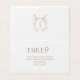Elegante Terracotta Monogram Wedding Platzkarten mit Initialen von Bride & Groom mit einem trendigen Wappen in Terracotta, um für jeden Tisch mit Anzahl und Gästennamen zu personalisieren.
