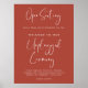 Offene Sitzgelegenheit & Unplugged Zeremonie Hochzeitszeichen. Eine moderne Typografie und eine trendige Terrakotta-, Ton- und Pfirsichfarbenpalette für Ihre Hochzeitsfeier: Wählen Sie diese einfache und elegante Hochzeitssuite. Vollständig anpassbar: Sie können sowohl den Hintergrund als auch die Textfarbe beliebig ändern.
