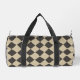 Elegant and timeless design for your duffle bag. Beige and dark checkered pattern, checkerboard tilted at 45 degrees, with space for your name or text on the front and side.