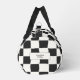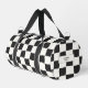 Elegant and timeless design for your duffle bag. Black and white checkered pattern, checkerboard, with space for your name or text on the front and side.