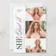Simple she did it graduation announcement and invitation features elegant typography design with timeless serif font and classic calligraphy, 3 photos on the right, additional grad party information and photo on the back, modern and classic.