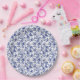 Elegant Toile de Jouy Floral Blue Bow Baby Shower Pappteller