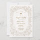 A simple, formal gold cross sits above your event details. The minimalist typography and neutral beige color palette make this christening invite the perfect choice for a baby boy, baby girl, or a gender-neutral celebration.