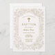 Celebrate your child's sacred day with this timeless and elegant traditional baptism invitation. This beautiful design features a stunning, vintage-inspired floral frame, intricately drawn in a delicate line-art style that evokes a classic, heirloom feel.