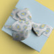 Spielerisch, geschlechtsneutral, Babydusche, die ein Band mit einer von Hand gezeichnet gelben Gummiente in einem weichen, blauen Band-Rahmen in einem Bogen.