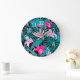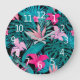 Elegant Tropical Hibiscus Flowers and Leaves Wird Große Wanduhr