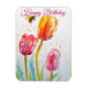 Elegant Tulip and Bee Watercolour Birthday Card Magnet