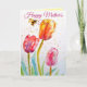 Elegant Tulip and Bee Watercolour Mothers Day Card Karte