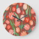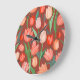 Elegant Tulip Floral Pattern – Red & Peach Spring Große Wanduhr