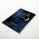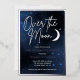 Elegante Einladungen über die Mond-Verlobungsfeier in blau, weiß und echter Silberfolie. Das Party zum Himmelsthema bietet einen Mond und Sterne auf einem Galaxiehintergrund, um ein paar zu feiern, die kurz vor einer Hochzeit stehen und verheiratet werden.