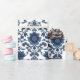 Elegant Victorian Damask Flower Pattern Navy Blue Geschenkpapier