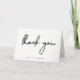 Diese klassische und elegante Karte sagt "danke" in modernem, schwarzem Skript auf einem sauberen weißen Hintergrund.