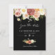 Eine elegante Vintage Wasserfarben Erde, floral Save the Date Card. Dramatisches Schwarz mit warmen, pachelfarbenen Rosen und rostigen Orangentönen, perfekt für eine Hochzeit im Herbst. Die Blume sind von Olivenfernn gerahmt und mit Gänseblümchen im Bohustyp übersät.