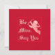 "Be Mine, Say Yes" Zitat, über einen klassischen, hellen, kranberrten Hintergrund, fertig mit elegantem, dekorativem Text... begleitet von einem jungen, geschmückten, kupiden. Ideal für Romantiker! Auch macht einen guten Weg, um die Frage am Valentinstag Pop. Auf der Rückseite finden Sie eine Vorlage, um den Anlass zu merken. Die Hintergrundfarbe ist individuell einstellbar, ebenso wie der Text, die Schriftart-Stile und die Farben.